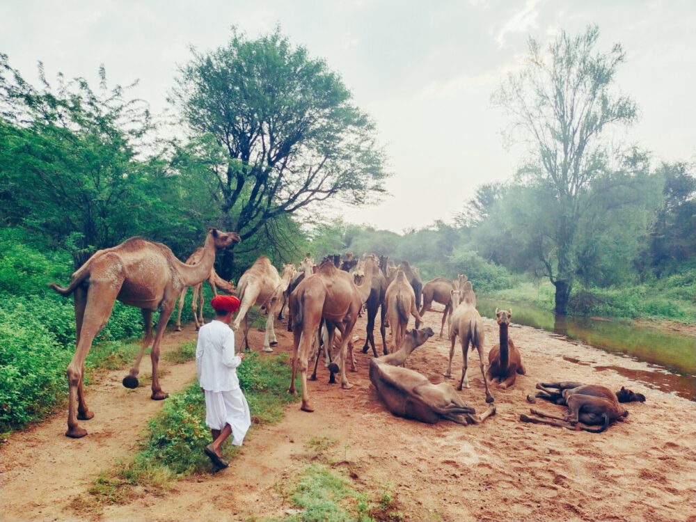 I am writing about this based on my own experience of setting up a small camel dairy in Rajasthan with the goal of creating income for Raika camel herders and conserving both Rajasthan’s camels and unique camel culture. We have learnt many things the hard way. We gave up keeping camels on site in a paddock because mange became impossible to control, and there was a problem of feeding them. Our Raika partners insisted that the camels needed to move and we had to let them go to certain grazing areas at particular times of the year. Now all the camels that produce milk for our dairy are herded, keep moving from place to place, and feed on natural vegetation.