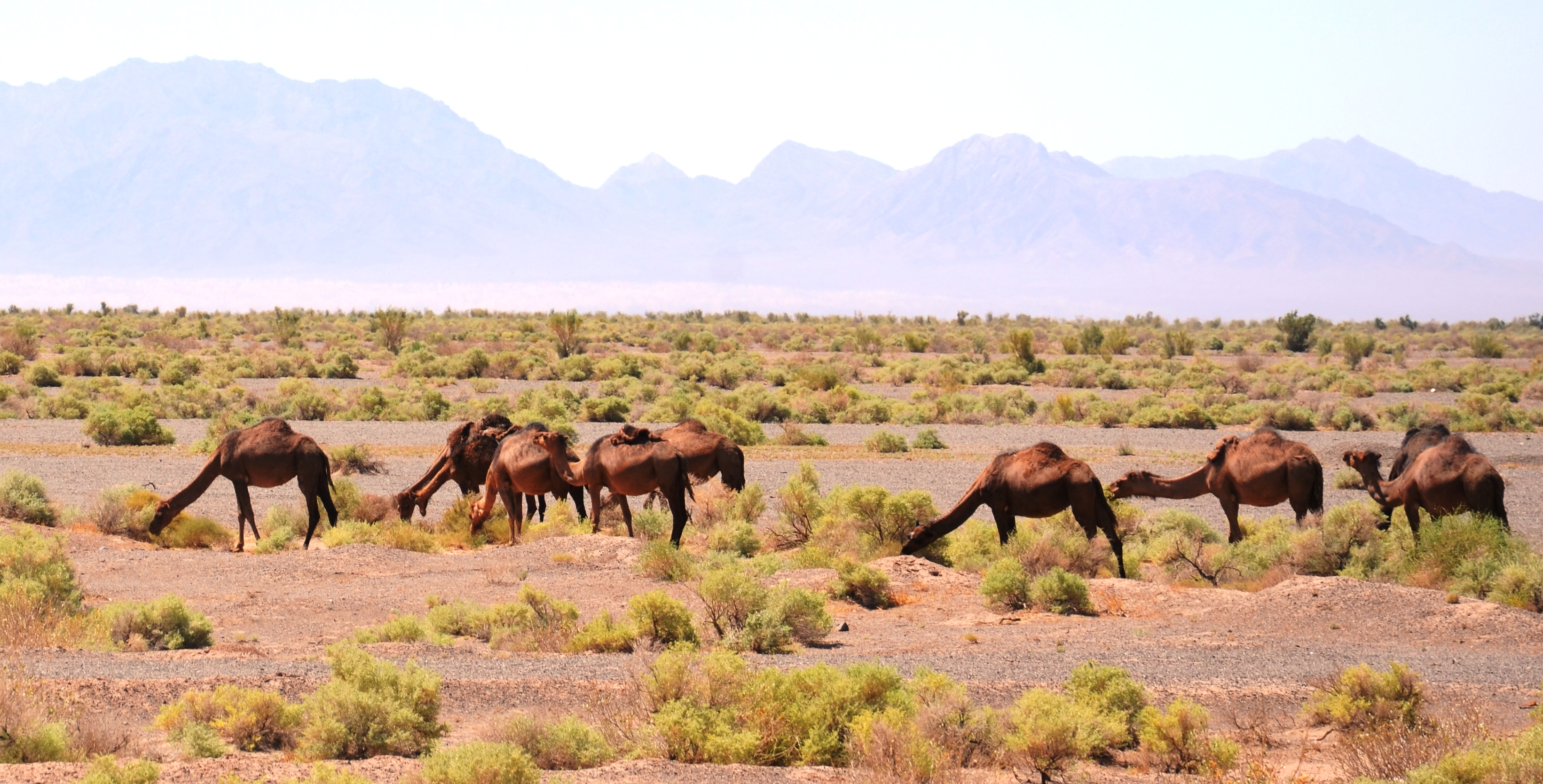 Mr. Rabii, a tall and gaunt man in his fifties with a gentle but somewhat resigned demeanour is from the Torud camel breeding tribe. We are sitting under the shade of a big tree in Chojaam, a crumbling complex of mudbrick buildings in the middle of the desert in Iran’s Semnan Province. It’s an abandoned caravanserai from the times in which the camel was the only means of transportation, trade and communication over long distances. Now only a couple of rooms are used by three camel herders for sleeping and cooking. But in front of it is a huge water tank, almost the size of an Olympic swimming pool. It is filled to the brim with fresh water channeled to it from a nearby mountain range through qanats, Iran’s traditional covered irrigation system.